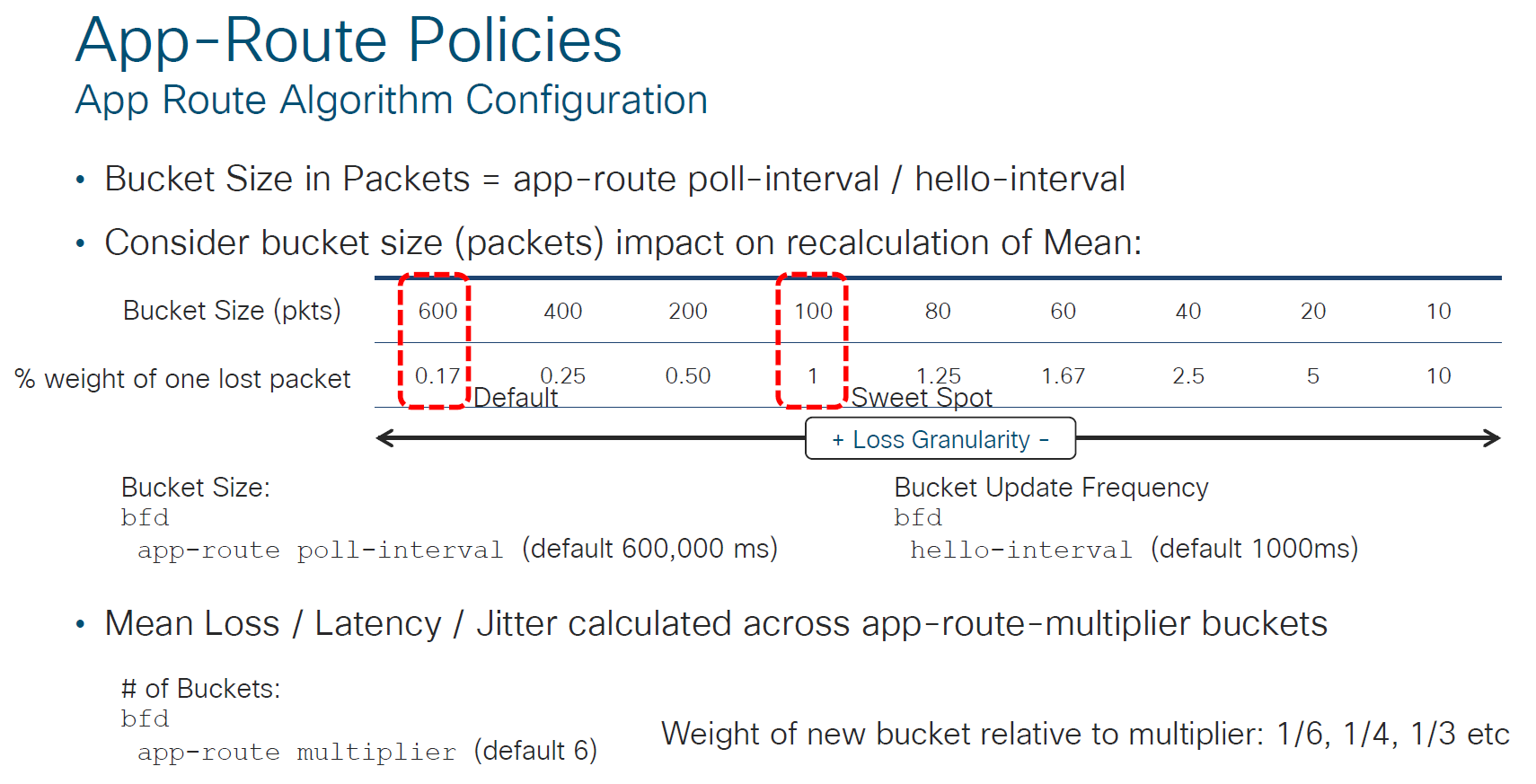 The average nature of the calculation of the values drives a certain tolerance factor, reducing the responsiveness in expense of stability. In other words: for the solution to detect a brownout condition in a link given default values, it would require at least one bucket to be filled (10 minutes) so a change can be triggered.
